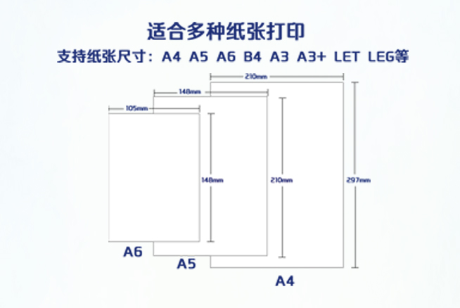 支持纸张尺寸 A4, A5, A6,B5, 10x15cm(4x6in),13x18cm(5x7in),16:9 wide size,