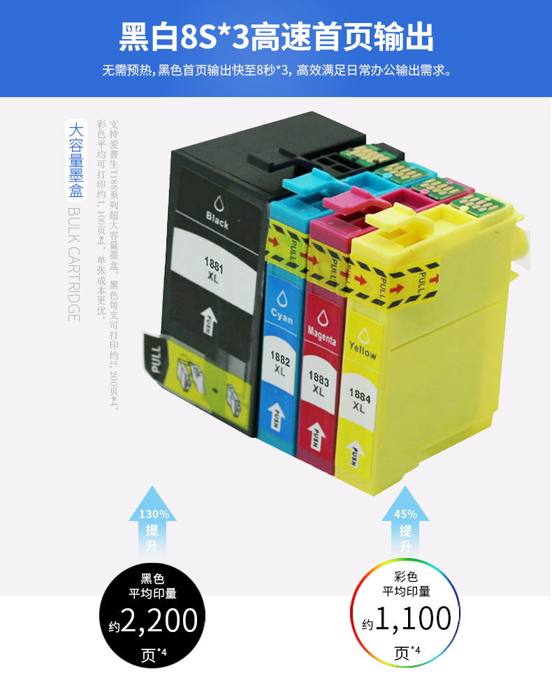 照片(10x15厘米/4x6英寸)约45秒 (照片默认模式,无边距)*3