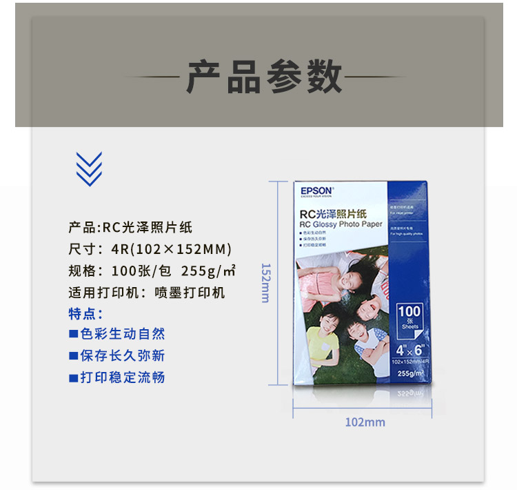爱普生相纸4R 6寸光泽照片纸 100张/包